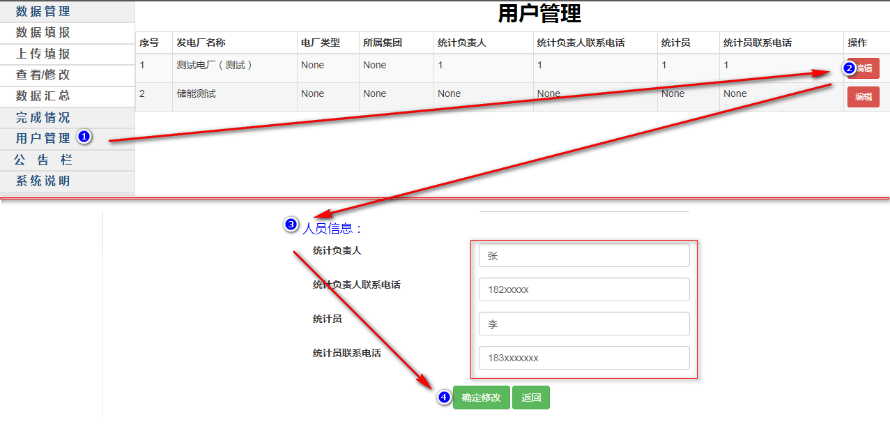 关于数据填报人员信息的补充和修改,您可以在系统中按照以下步骤操作:
